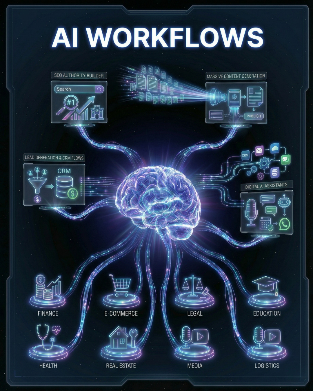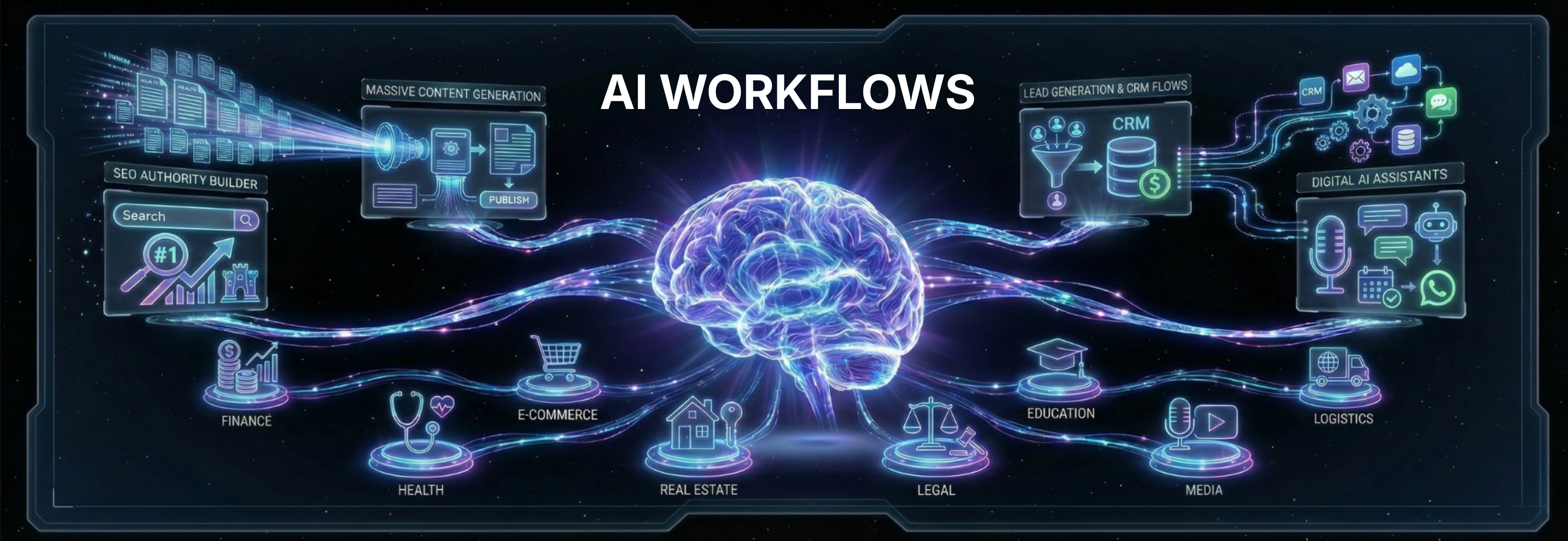 Select your industry to explore specialized 6-point automation bundles—prioritizing WhatsApp Agents and SEO Content Engines.
